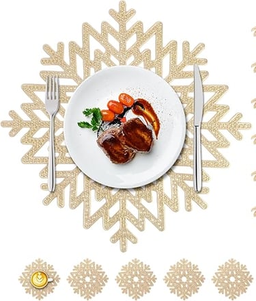 Beautiful gold snowflake placemats that bring a soft winter sparkle to your table. Perfect for adding festive elegance to each place setting and creating a warm, luxury Christmas look.