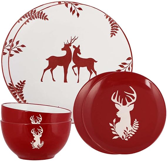 Elegant festive red dinnerware featuring a charming reindeer motif and soft seasonal detailing. Perfect for adding warm Christmas style to your table and beautifully complementing any holiday tablescape.