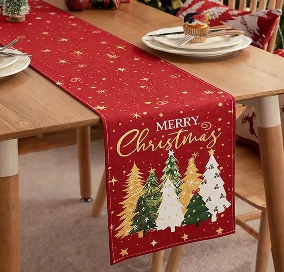 Christmas Red Table Runner Tree Design